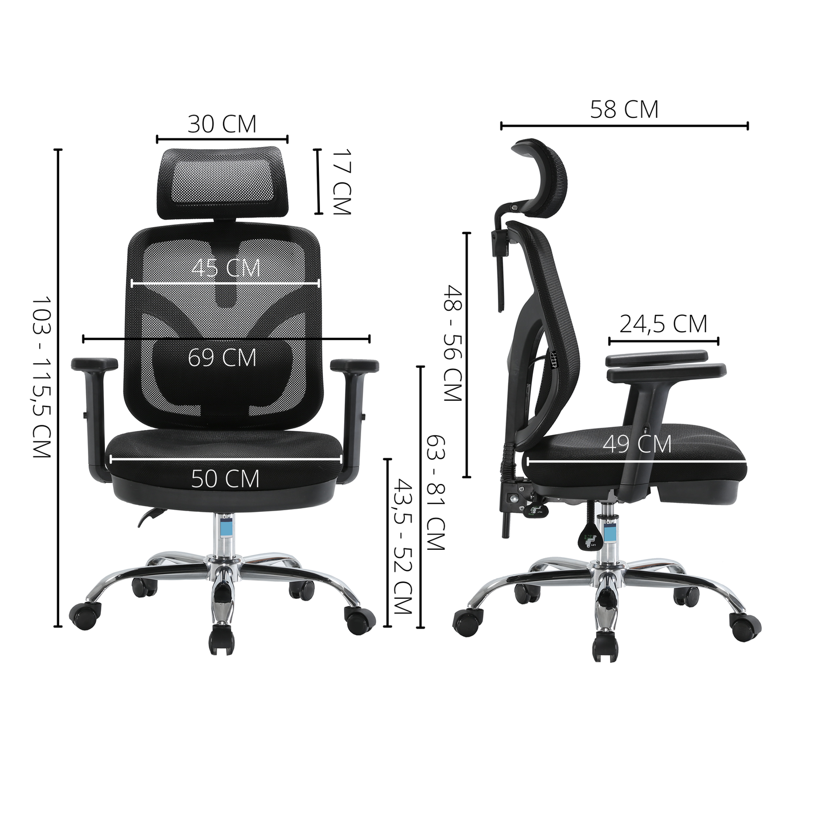 - płynna regulacja wysokości krzesła za pomocą podnośnika pneumatycznego